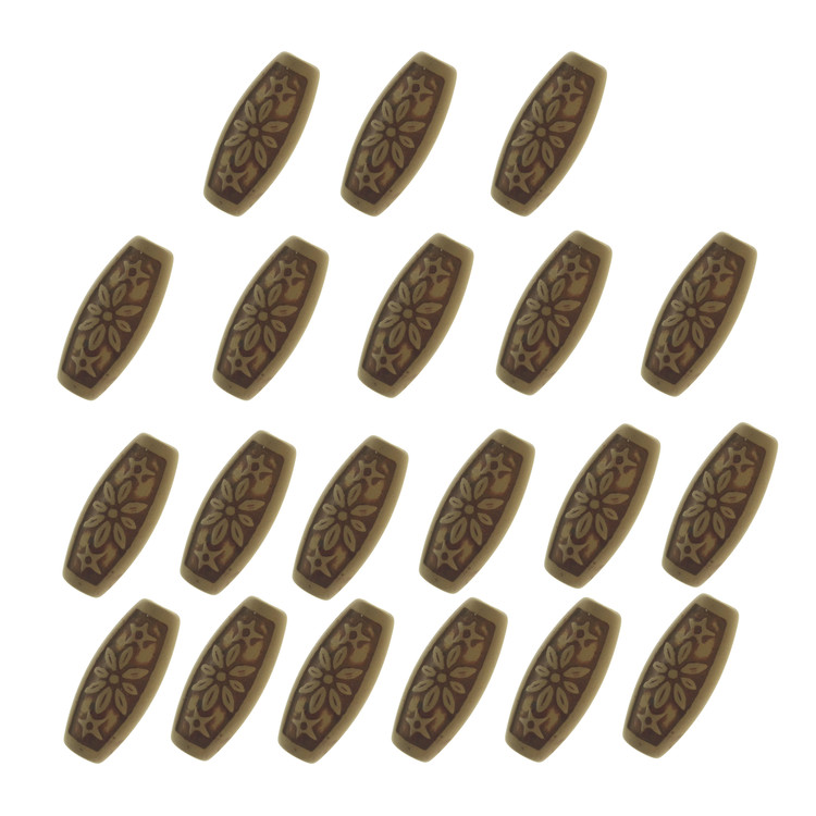 یک بسته 20 عددی مهره طرح دار کرم قهوه ای طرح چوب با ابعاد 1.3*3 سانتی متر.مناسب تزئین لباس و کارهای هنری مجسمه سازی عروسک سازی و ساخت بدلیجات گل سر تل سر دستبند گردنبند