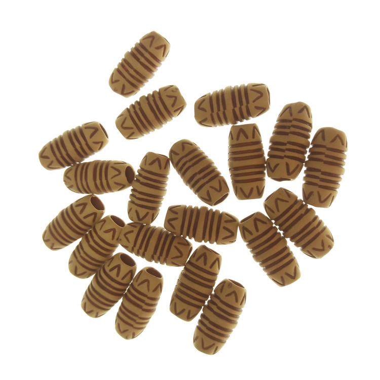 یک بسته 20 عددی مهره طرح دار کرم قهوه ای طرح چوب با ابعاد 1.9*0.9 سانتی متر.مناسب تزئین لباس و کارهای هنری مجسمه سازی عروسک سازی و ساخت بدلیجات گل سر تل سر دستبند گردنبند
