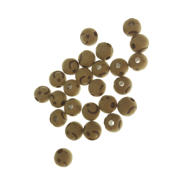 یک بسته 25 عددی مهره طرح دار کرم قهوه ای طرح چوب با قطر 0.8 سانتی متر.مناسب تزئین لباس و کارهای هنری مجسمه سازی عروسک سازی و ساخت بدلیجات گل سر تل سر دستبند گردنبند