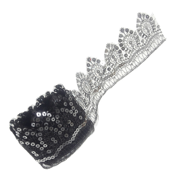 3.5 متر نوار تزئینی لمه با عرض حدود 6.5 سانتی متر طرح و رنگ طبق عکس.رنگ مشکی پولک نقره ای.مناسب تزئینات لباس مانتو کیف کارهای هنری و سنتی.