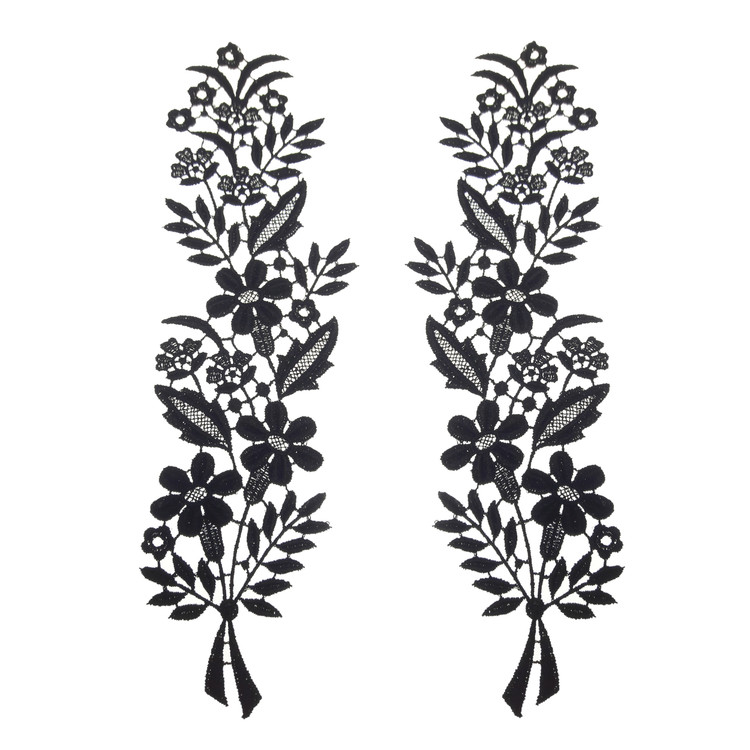 2 عدد اپلیکه مناسب کت دامن لباس شلوار و سایر کارهای هنری با ابعاد حدود 7*27 سانتی متر.رنگ مشکی مطابق عکس.اپلیکه را می توانید با ملیله منجوق مروارید و نگین تزئین کنید.به ابعاد استیکر دقت بفرمایید.