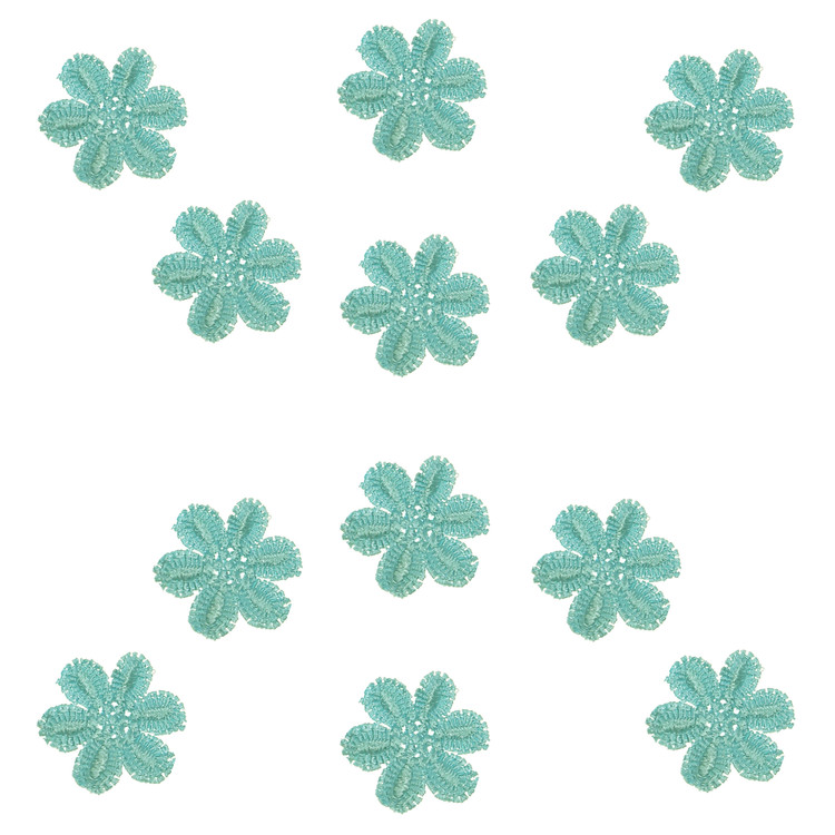 یک بسته 12 عددی گل آبی با ابعاد حدود 3.5*3.5 سانتی متر.مناسب تزئین لباس و کارهای هنری مجسمه سازی عروسک سازی و ساخت بدلیجات گل سر تل سر و غیره