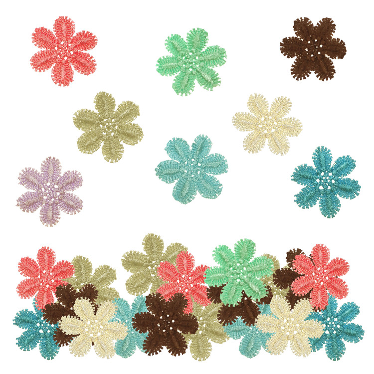 یک بسته 27 عددی گل در رنگ های مختلف دقیقا طبق عکس با ابعاد حدود 3.5*3.5 سانتی متر.مناسب تزئین لباس و کارهای هنری مجسمه سازی عروسک سازی و ساخت بدلیجات گل سر تل سر و غیره