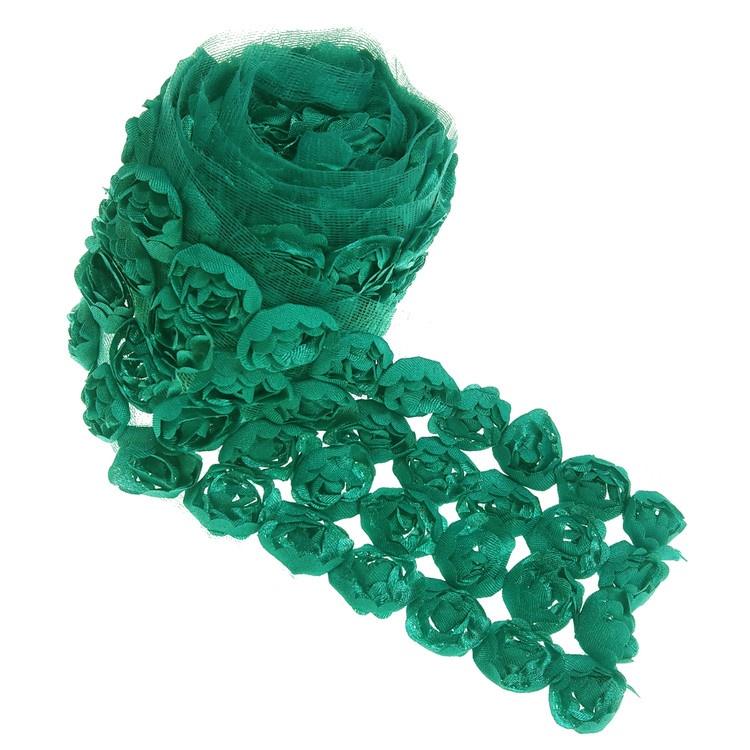 یراق گل طول 1.3 متر مدل برجسته 4 ردیفه با عرض حدود 7 سانتی متر.رنگ سبزآبی.مناسب تزئین کت دامن شال گل سر و سایر کارهای هنری.برای کار های باریک تر قابل برش به ردیف های کمتر می باشد