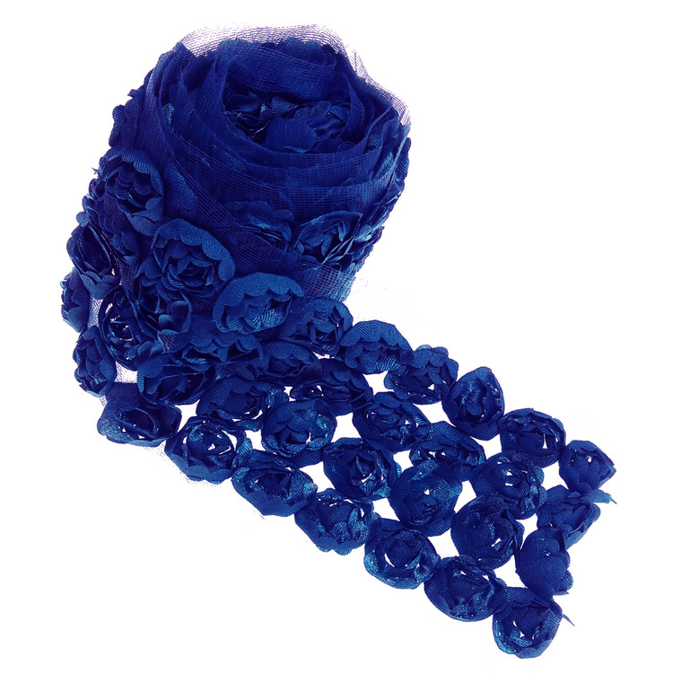 یراق گل طول 0.8 متر مدل برجسته 4 ردیفه با عرض حدود 7 سانتی متر.رنگ آبی کاربنی.مناسب تزئین کت دامن شال گل سر و سایر کارهای هنری.برای کار های باریک تر قابل برش به ردیف های کمتر می باشد