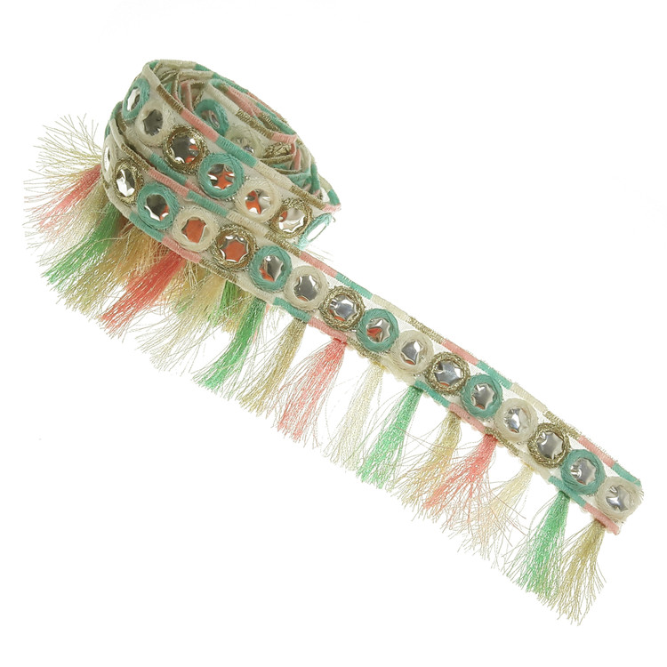 یراق ریشه نخ ابریشم.طول 1.5 متر با عرض حدود 5.5 سانتی متر.مناسب تزئین کت دامن شال و سایر کارهای هنری