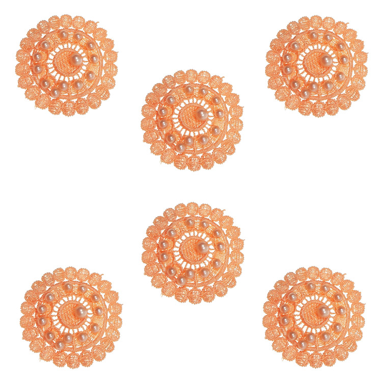 یک بسته 6 عددی گل گلبهی با مروارید های پرچ شده.با ابعاد حدود 6*6 سانتی متر.مناسب تزئین لباس و کارهای هنری مجسمه سازی عروسک سازی و ساخت بدلیجات گل سر تل سر و غیره