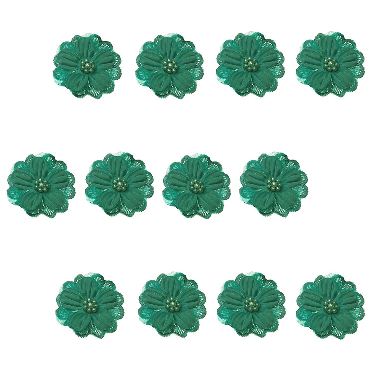 یک بسته 12 عددی گل سبز آبی.با ابعاد حدود 4.5*4.5 سانتی متر.مناسب تزئین لباس و کارهای هنری مجسمه سازی عروسک سازی و ساخت بدلیجات گل سر تل سر و غیره