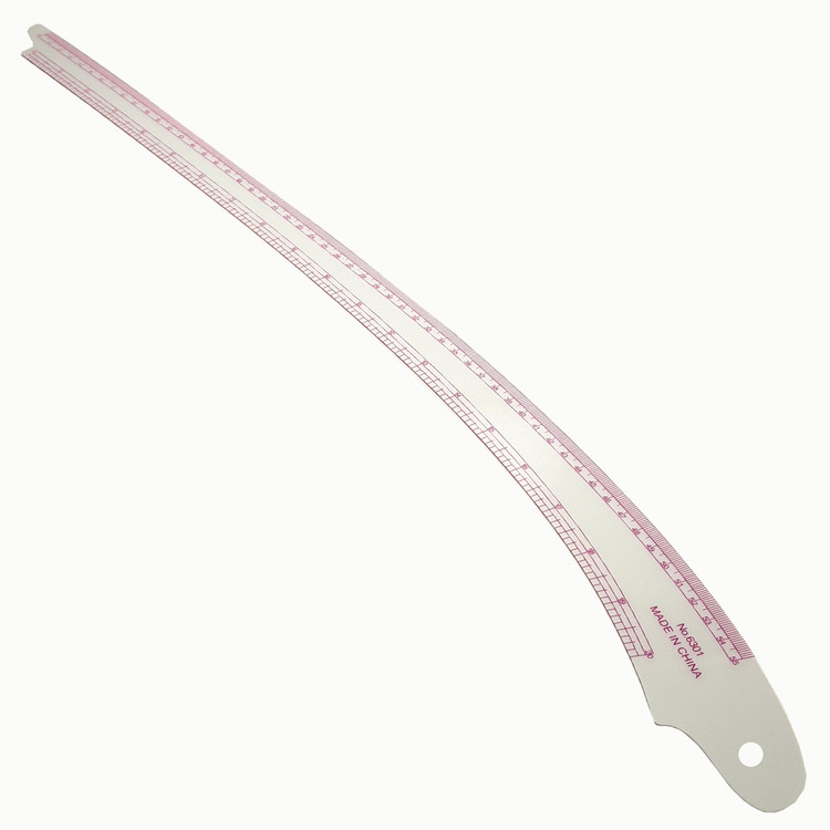 خط کش شمشیری برای رسم الگوی دارای انحنا مورد استفاده قرار میگیرد.مانند لبه یقه،انحنای آستین لباس و کت و مانتو،انحنای ران شلوار،انحنای فاق شلوار و دامن و همچنین برای برش های منحنی انواع لباس ها.خط کش ژله ای بسیار با کیفیت بیرنگ و مثل شیشه طرح و رنگ کاغذ و پارچه در زیر خط کش مشخص است.عدد های روی خط کش بسیار خوانا و رنگ سرخابی است .درجه کیفیت 1