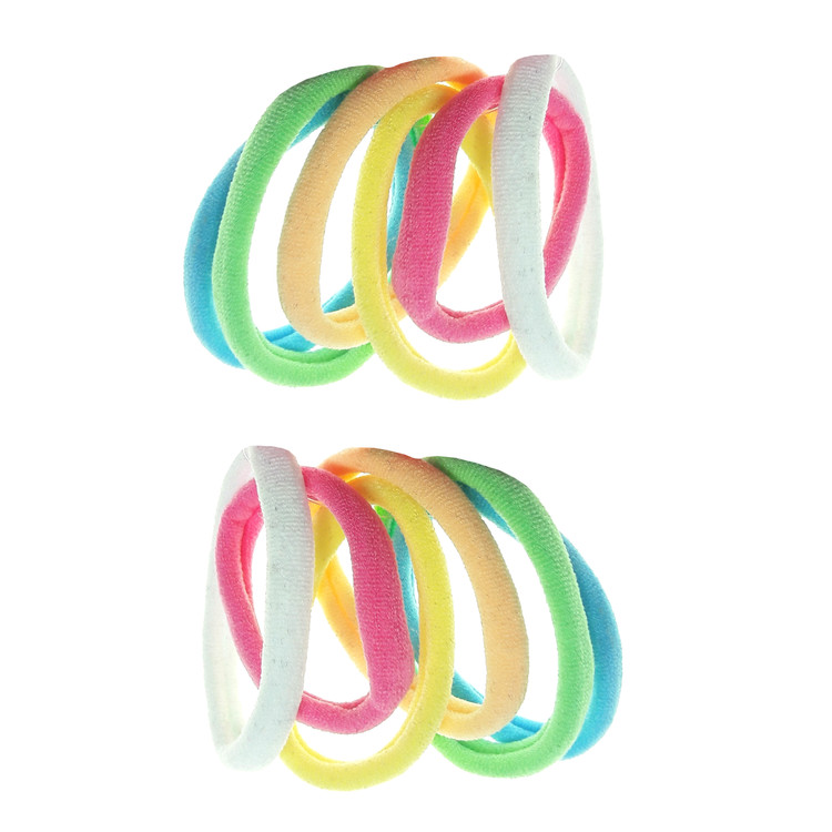 2 بسته 6 عددی کش مو مدل حوله ای در رنگ های مختلف و شاد با قطر حدود 5 سانتی متر و ضخامت 7 میلی متر