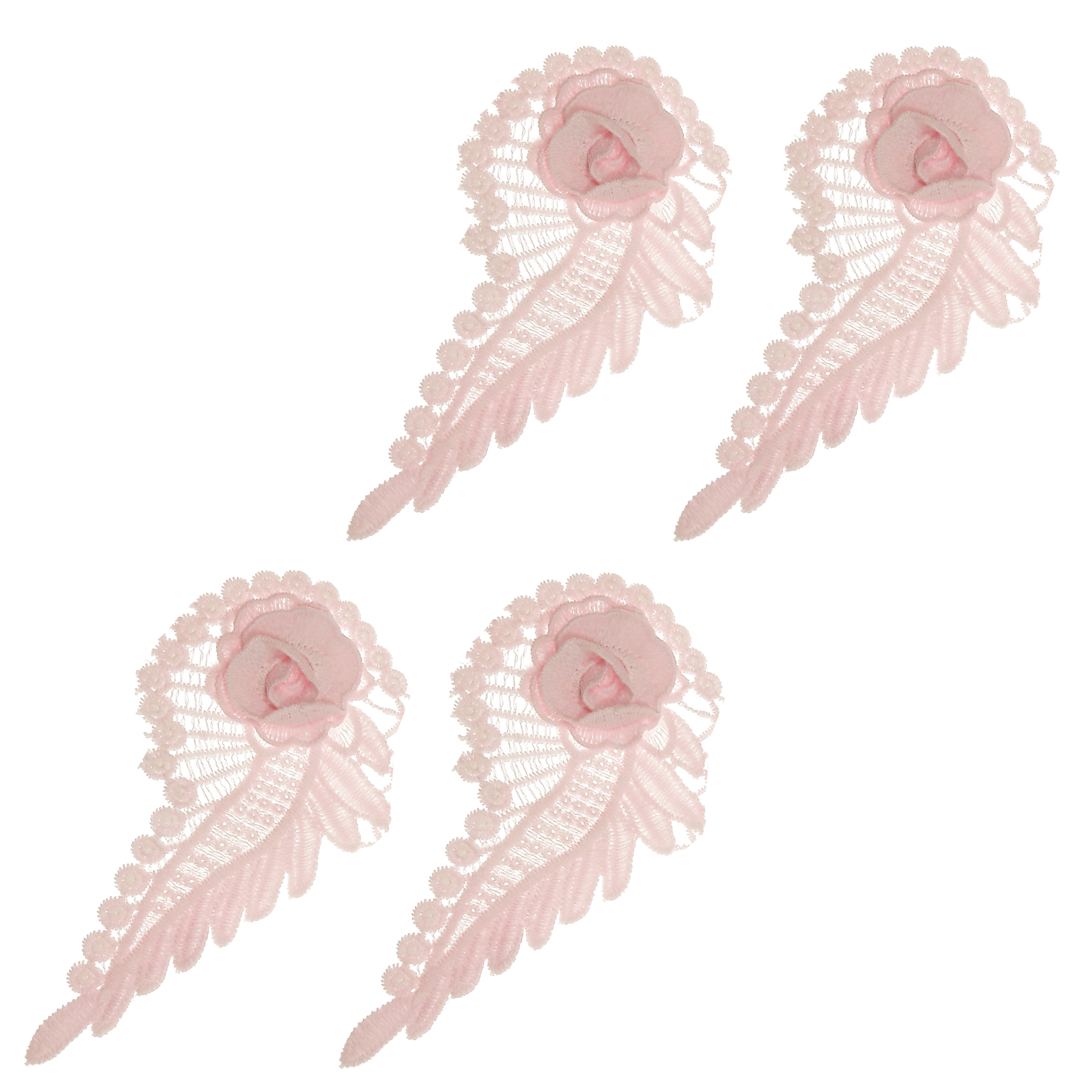 4 عدد استیکر برجسته گل کنفی صورتی روشن با ابعاد حدود 8*15 سانتی متر مناسب تزئینات لباس مانتو کت کیف و سایر کارهای هنری