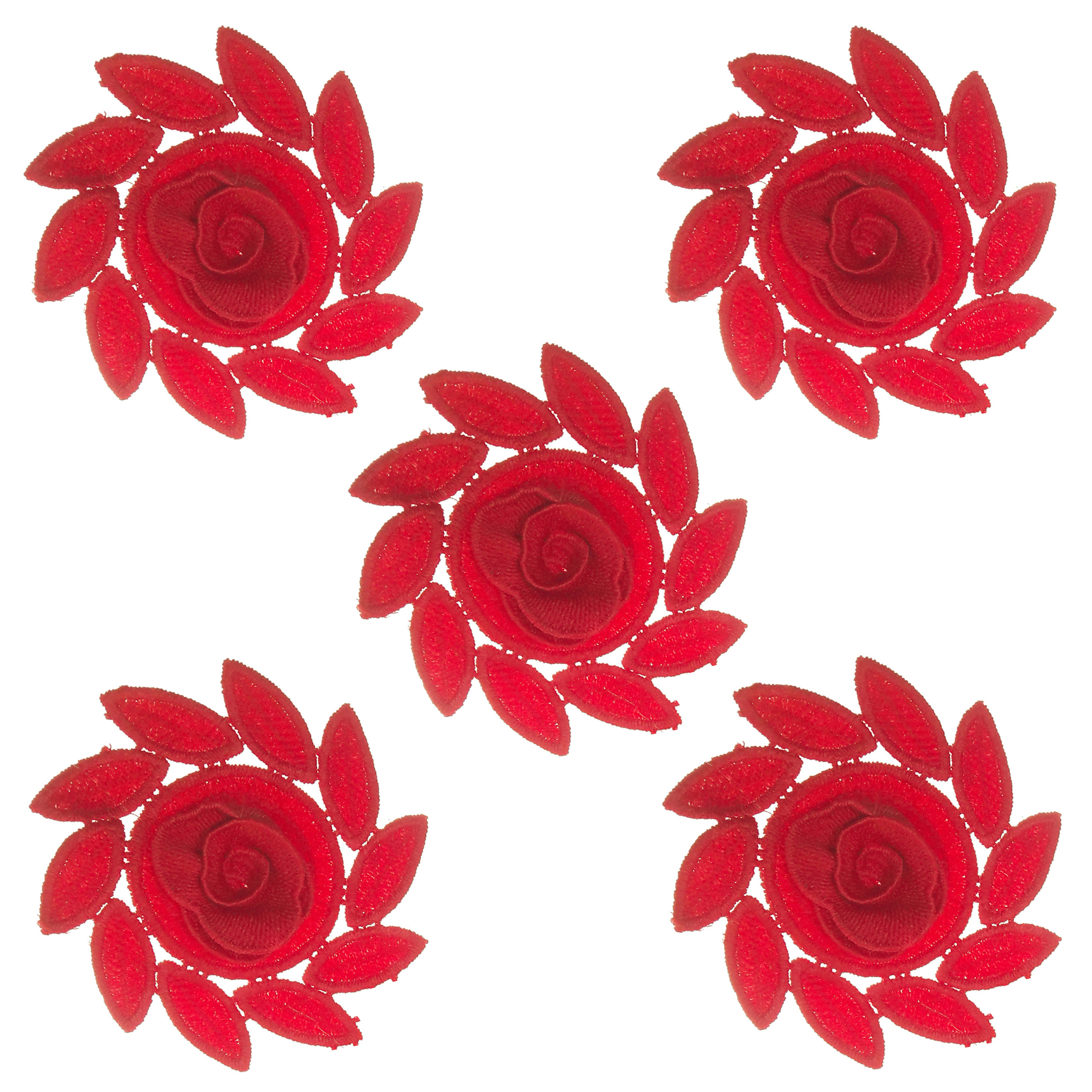 5 عدد استیکر برجسته گل کنفی قرمز با ابعاد حدود 10*10 سانتی متر مناسب تزئینات لباس مانتو کت کیف و سایر کارهای هنری