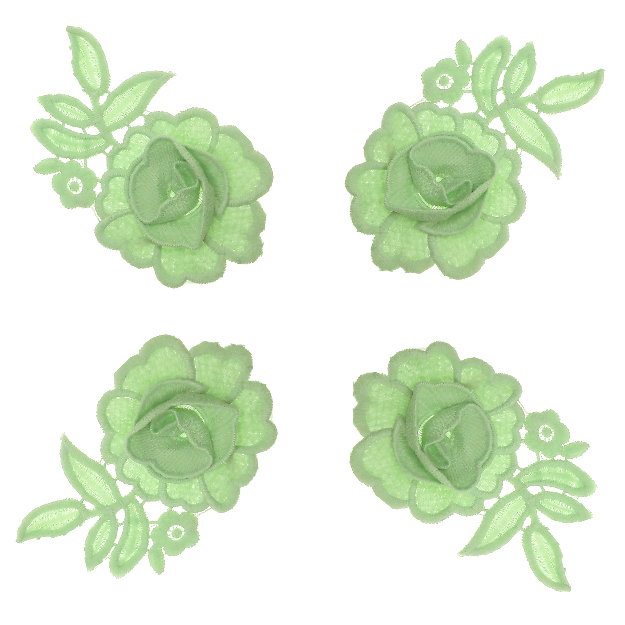 4 عدد استیکر برجسته گل کنفی سبز روشن با ابعاد حدود 7*10 سانتی متر مناسب تزئینات لباس مانتو کت کیف و سایر کارهای هنری
