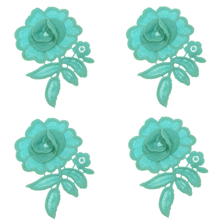 4 عدد استیکر برجسته گل کنفی آبی روشن با ابعاد حدود 7*10 سانتی متر مناسب تزئینات لباس مانتو کت کیف و سایر کارهای هنری