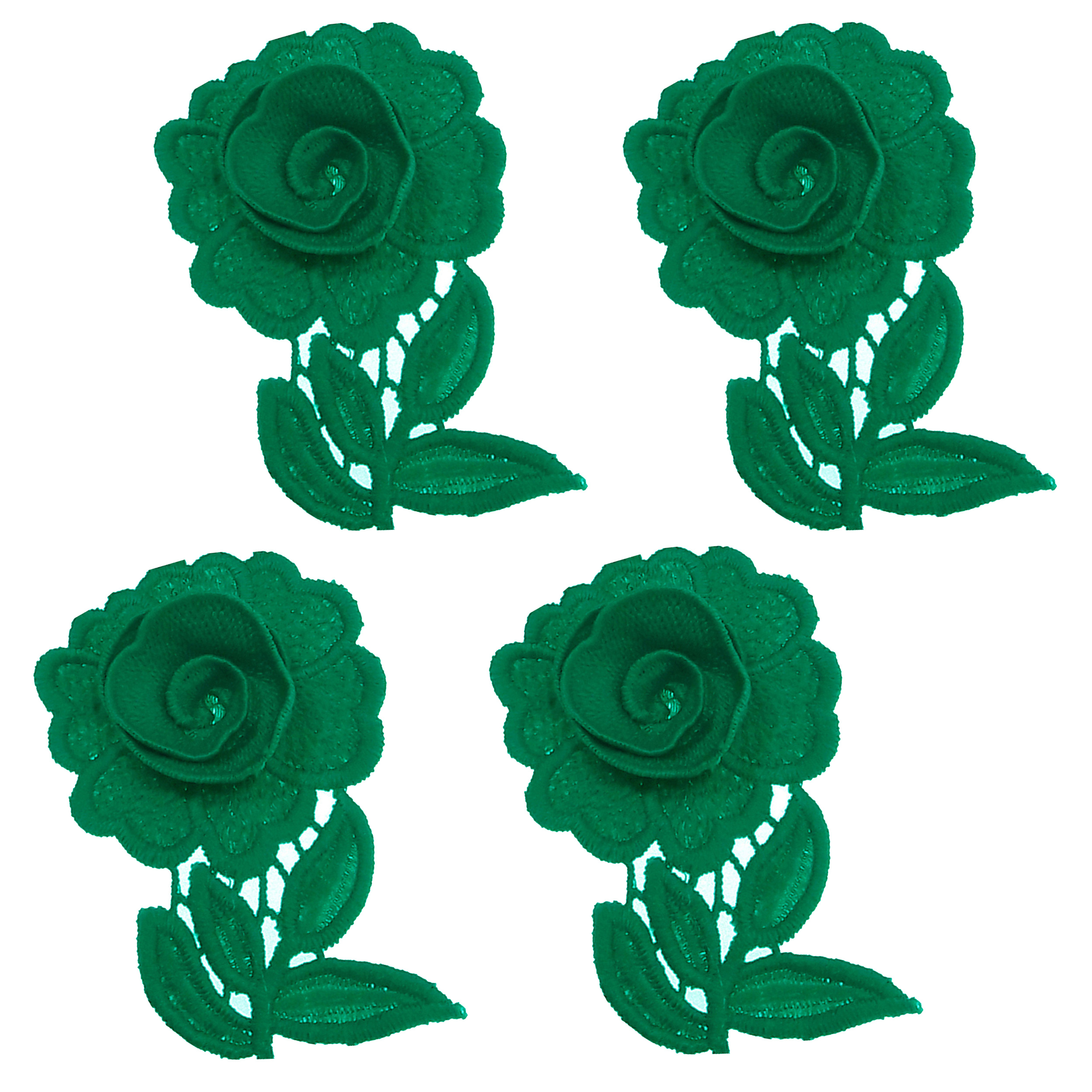 4 عدد استیکر برجسته گل کنفی سبزآبی با ابعاد حدود 7*10 سانتی متر مناسب تزئینات لباس مانتو کت کیف و سایر کارهای هنری
