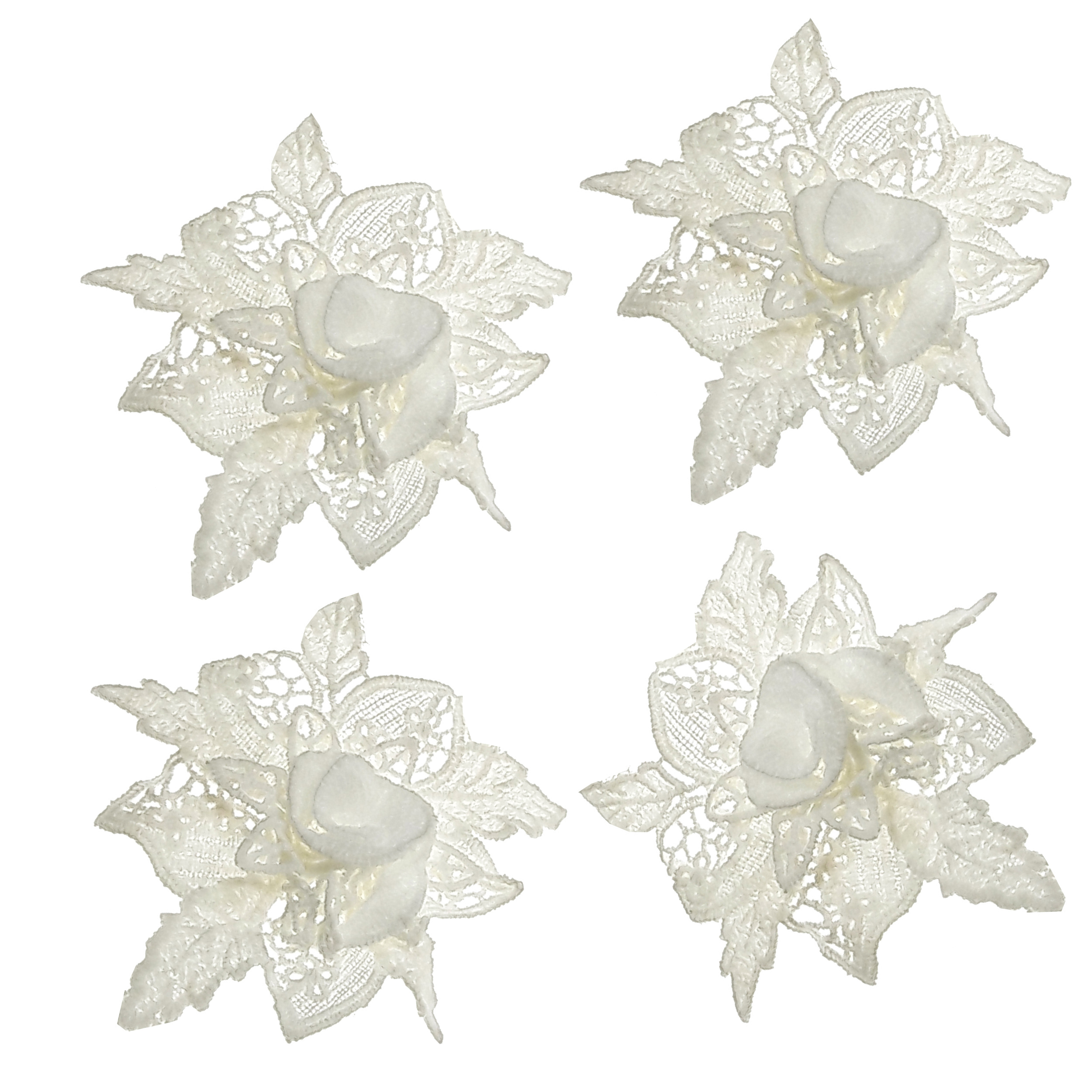 4 عدد استیکر برجسته گل کنفی سفید با ابعاد حدود 10*10 سانتی متر مناسب تزئینات لباس مانتو کت کیف و سایر کارهای هنری