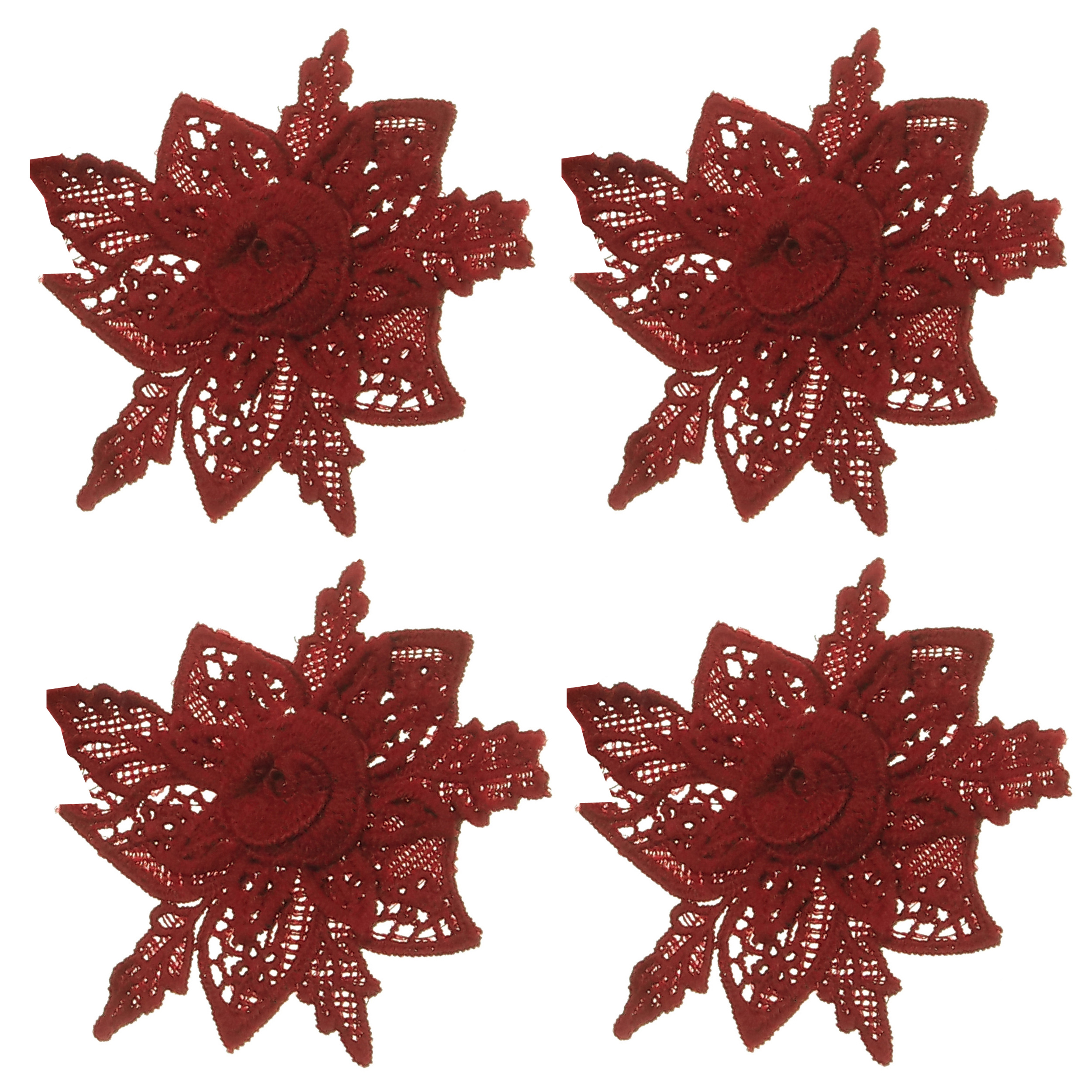 4 عدد استیکر برجسته گل کنفی زرشکی با ابعاد حدود 10*10 سانتی متر مناسب تزئینات لباس مانتو کت کیف و سایر کارهای هنری