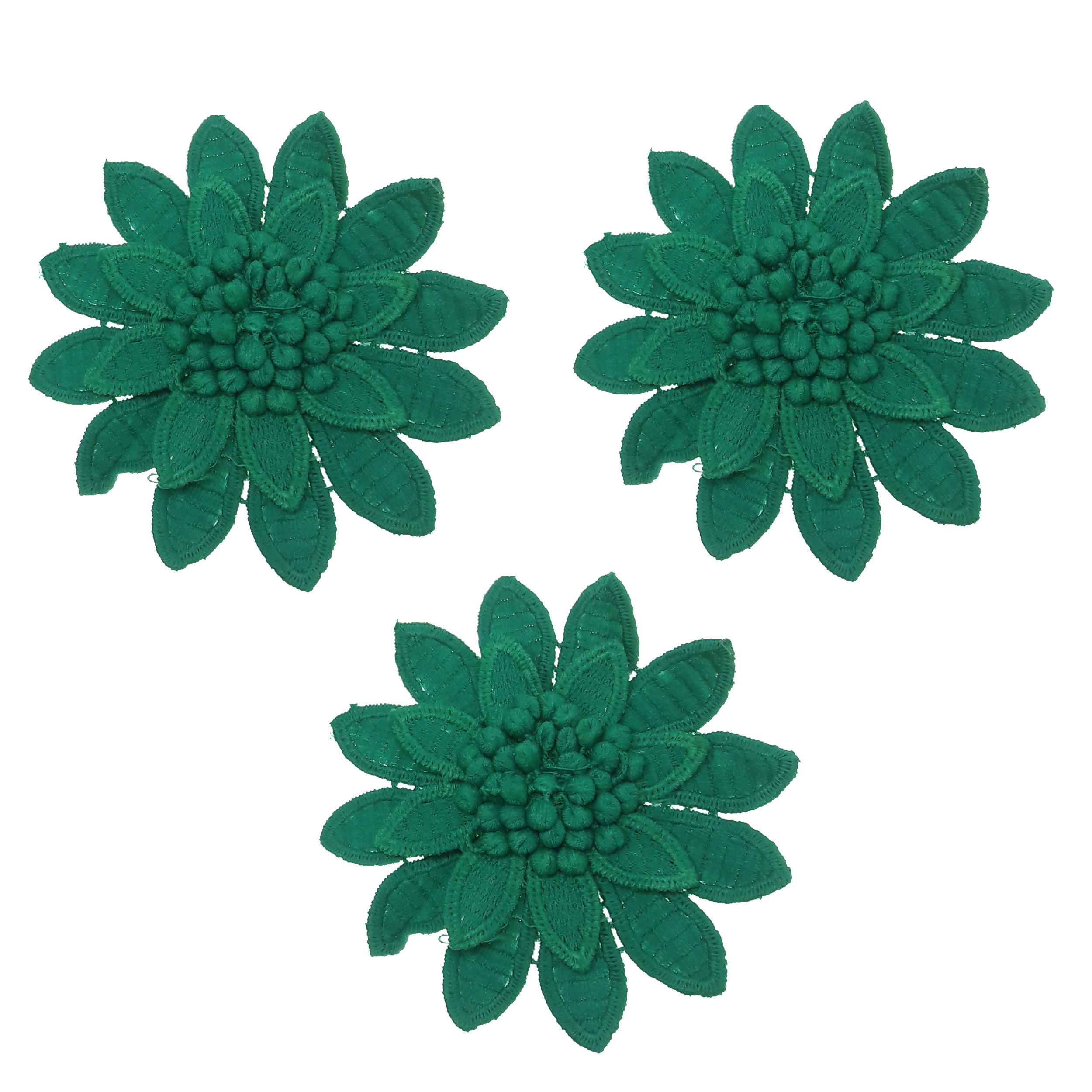 3 عدد استیکر برجسته گل کنفی سبزآبی با ابعاد حدود 10*10 سانتی متر مناسب تزئینات لباس مانتو کت کیف و سایر کارهای هنری