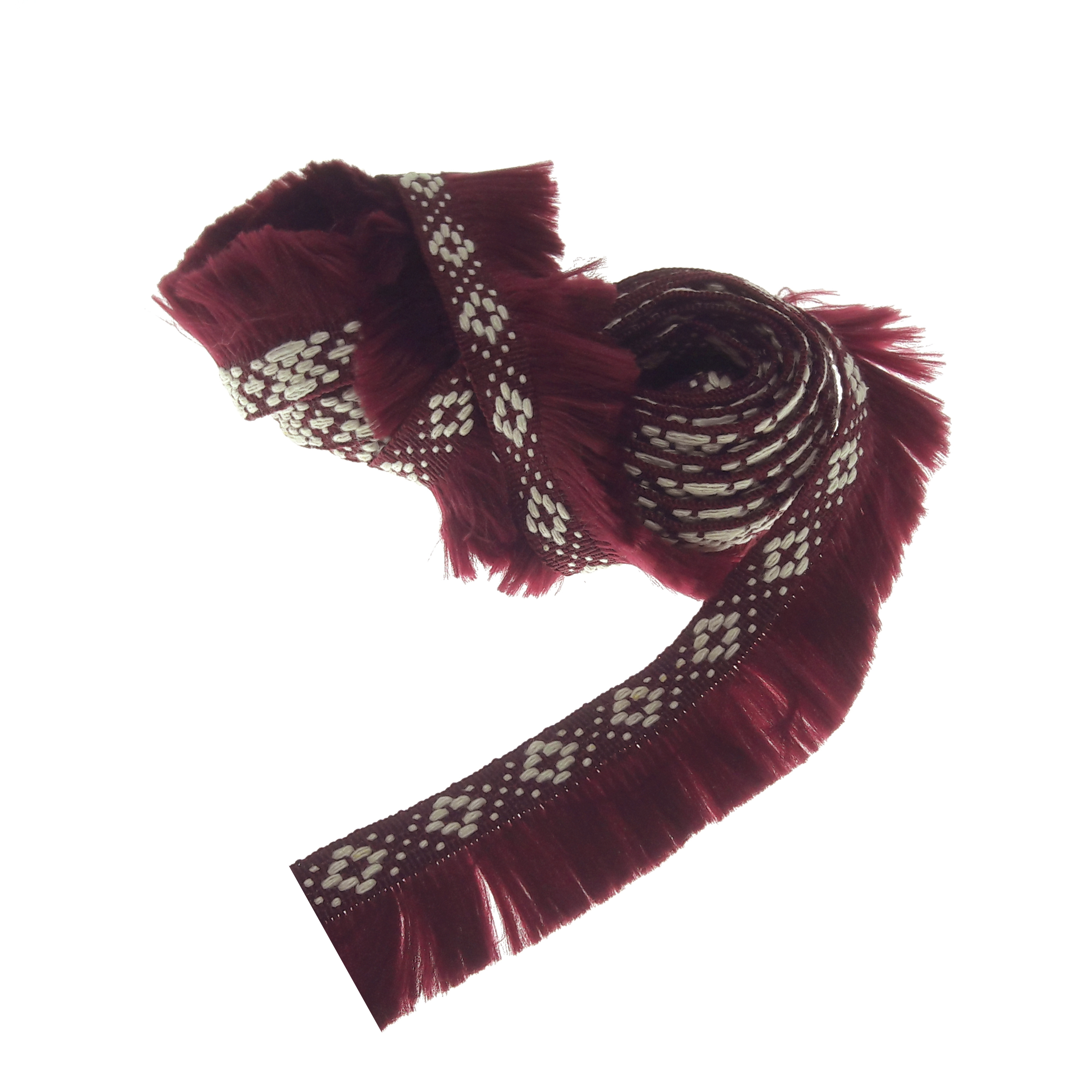 2.7 متر ریشه کنفی زرشکی به عرض 3 سانتی متر مناسب تزئینات لباس دامن مانتو و کارهای هنری