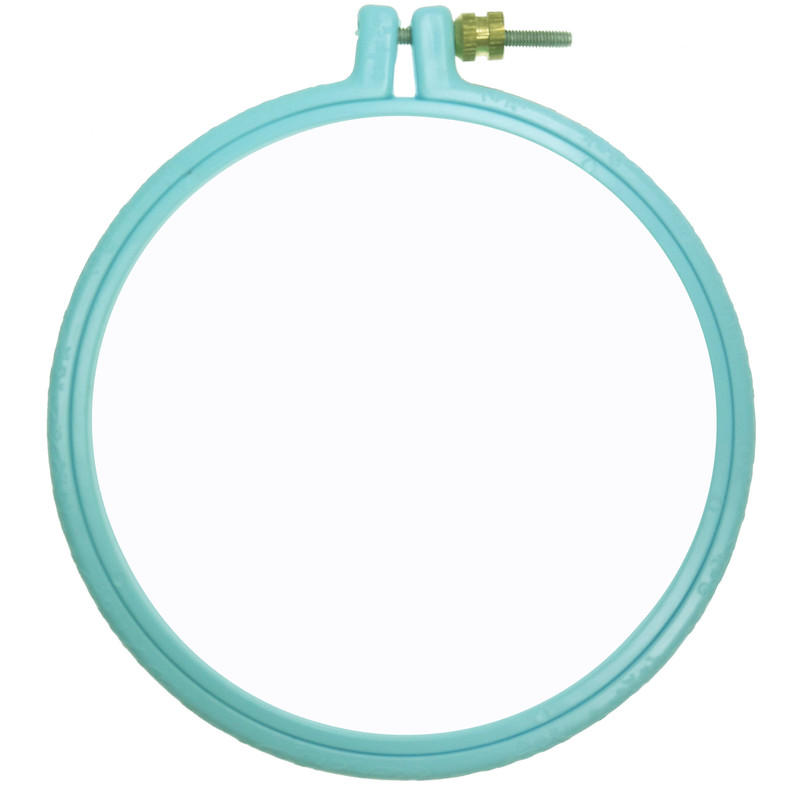 کارگاه گلدوزی سایز 19 سانت رنگ آبی روشن.روی بدنه کارگاه طرح داره.وسیله ای برای ثابت و محکم کردن پارچه است تا سوزن دوزی بر روی پارچه به راحتی انجام شود.