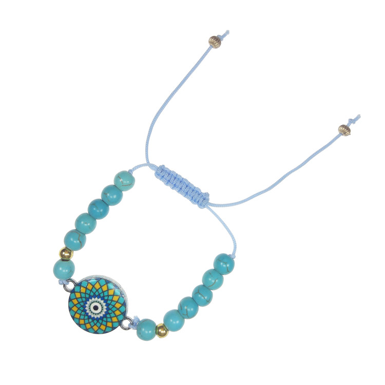 دستبند بسیار زیبا بصورت گره ای طراحی شده که قابل تنظیم برای هر سایز مچ هست.کیفیت عالی.اندازه مهره ها حدود 6 میلی متر.طرح و رنگ و پلاک دقیقا طبق عکس ارسال می شود.