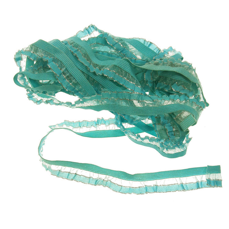 3 متر نوار حریر چین دار با عرض 1.7 سانتی متر.رنگ آبی زنگاری روشن با 2 ردیف نخ لمه نقره ای.مناسب تزئینات لباس مانتو و دکوراسیون های هنری.مثل نوار مغزی هم می توانید لای درز پارچه قرار دهید و بدوزید.