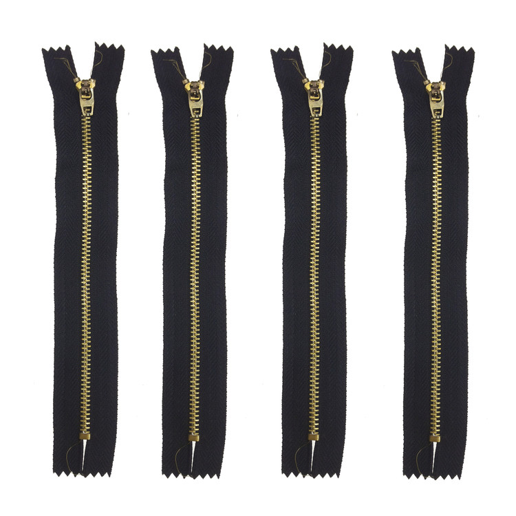 4 عدد زیپ 18 سانت دنده فلزی طلایی شماره 4.5 با پارچه سرمه ای طبق عکس ارسال می شود.رنگ ها ممکن است در نمایشگر شما کمی تفاوت داشته باشد.مناسب شلوار کیف جیب کوله و غیره.