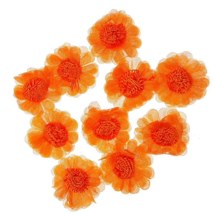 سایر توضیحات: 10 عدد گل تزئینی با ابعاد حدود 2.5x2.5 سانتی متر طرح و رنگ طبق عکس.رنگ نارنجی.مناسب تزئینات لباس کیف کفش گل سر تل شنیون تزئینات هفت سین جوراب شال عروسک و غیره