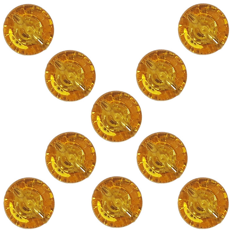 10 عدد دکمه نگین با قطر 1.5 سانتی متر ضخامت حدود 0.8 سانتی متر طرح و رنگ مطابق عکس.زرد.مناسب لباس مانتو و غیره.لطفا به ابعاد دکمه دقت بفرمایید.