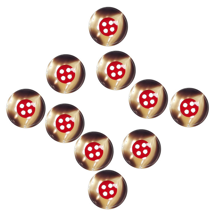 10 عدد دکمه با قطر 1.8 و ضخامت 0.3 سانتی متر رنگ کرم قهوه ای وسط قرمز طبق عکس.برای بهتر دیده شدن کالا از بزرگنمایی استفاده شده لطفا به ابعاد دکمه دقت بفرمایید.