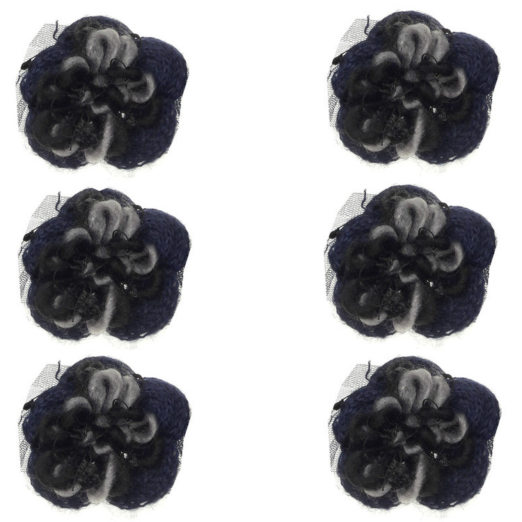 6 عدد گل برجسته با قطر حدود 7 سانتی متر رنگ زمینه سرمه ای و رنگ گل وسط مشکی و طوسی.مناسب تزئینات لباس مانتو دامن کیف کفش و غیره